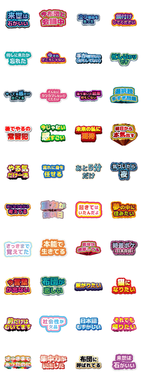 毎日使える、デカ文字、大人女子、シンプル、可愛い、面白い、丁寧語、仕事、ママ向け、ギャル、ネタ系、文字、ぷっくりシール、日常、きらきら、丁寧、ギャグ、かわいい