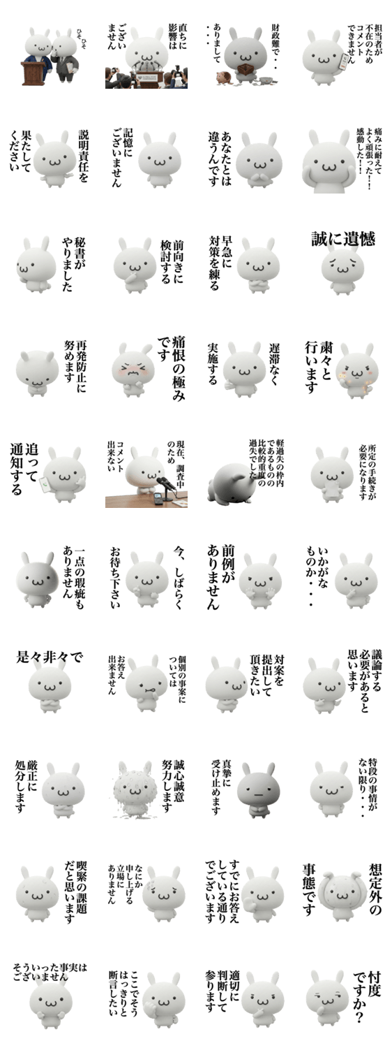 政治家みたいな事を言わずにはいられないウサギのスタンプです。3D風。