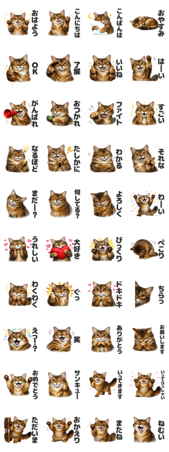 かわいいソマリの毎日使えるスタンプです。/猫/ねこ/長毛/ふわふわ/もこもこ/上品/やさしい/きれい/しっぽ/ふさふさ/ほのぼの/いやし/つややか