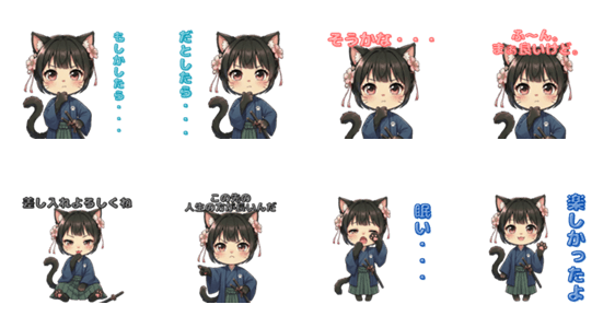 | スタンプ説明 | 着物や忍者姿のゆるかわ和風ねこたちのスタンプです。 日常会話でアクセントのある一言を収録。 友だち・家族・仕事のトークにも使えるほのぼのスタンプです。 |