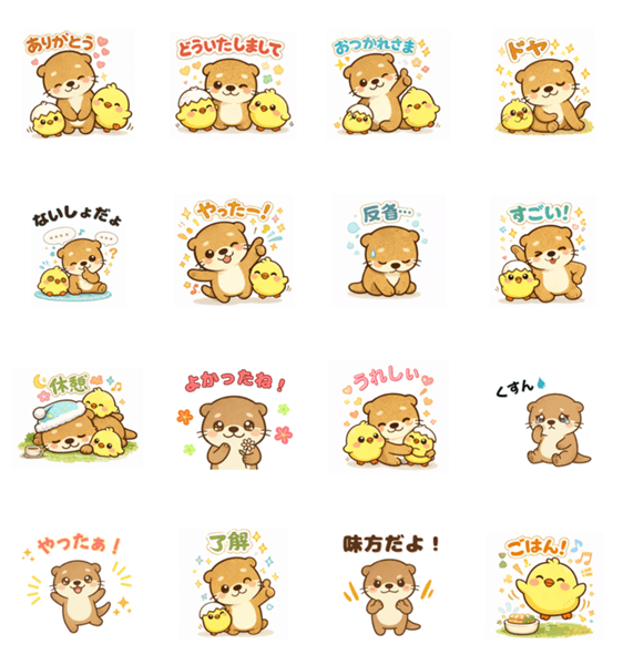Cute otter and chick stickers for everyday chats. Full of greetings, thanks, and fun reactions you can use anytime. Enjoy chatting with these adorable friends!