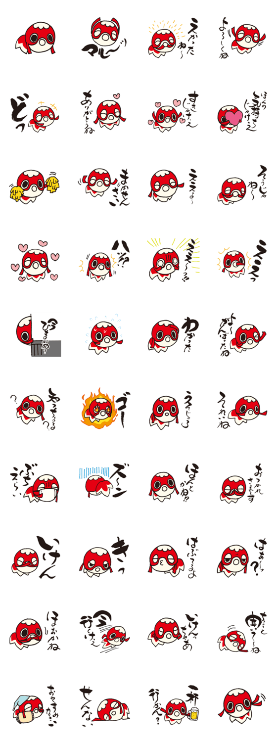 | スタンプ説明 | 白壁の町並みで暮らす文具屋さんが、金魚ちょうちんと柳井の良さを少しでも知ってもらえたらと思い作ったスタンプです。 |