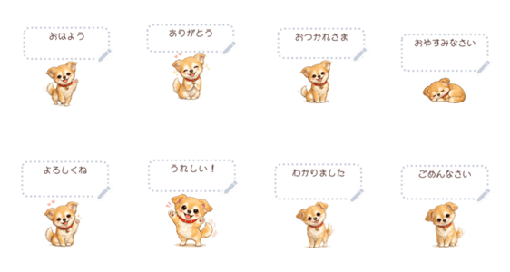 チワワのココちゃんです。あとから自由にメッセージを入力して使えるメッセージスタンプです。家族や友だちとの日常会話で使いやすい、ほっこりかわいい8種類です。 現在この商品は一部のスマートフォン版LINE 10.3.0以上のトークルームでのみ使用できます。動作環境の最新情報はヘルプをご確認ください。