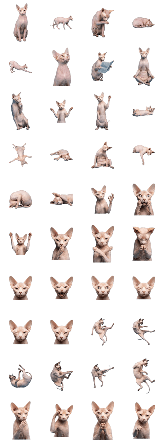 写真風 リアル 猫 無毛猫 個性的 クール かわいい 癒し系 ナチュラル 日常 使いやすい 人気 トーク用 LINEスタンプにゃんこレア変わってる不思議デボンレックスカナディア ※このスタンプはトークルームで大きく表示されるBIGスタンプです。