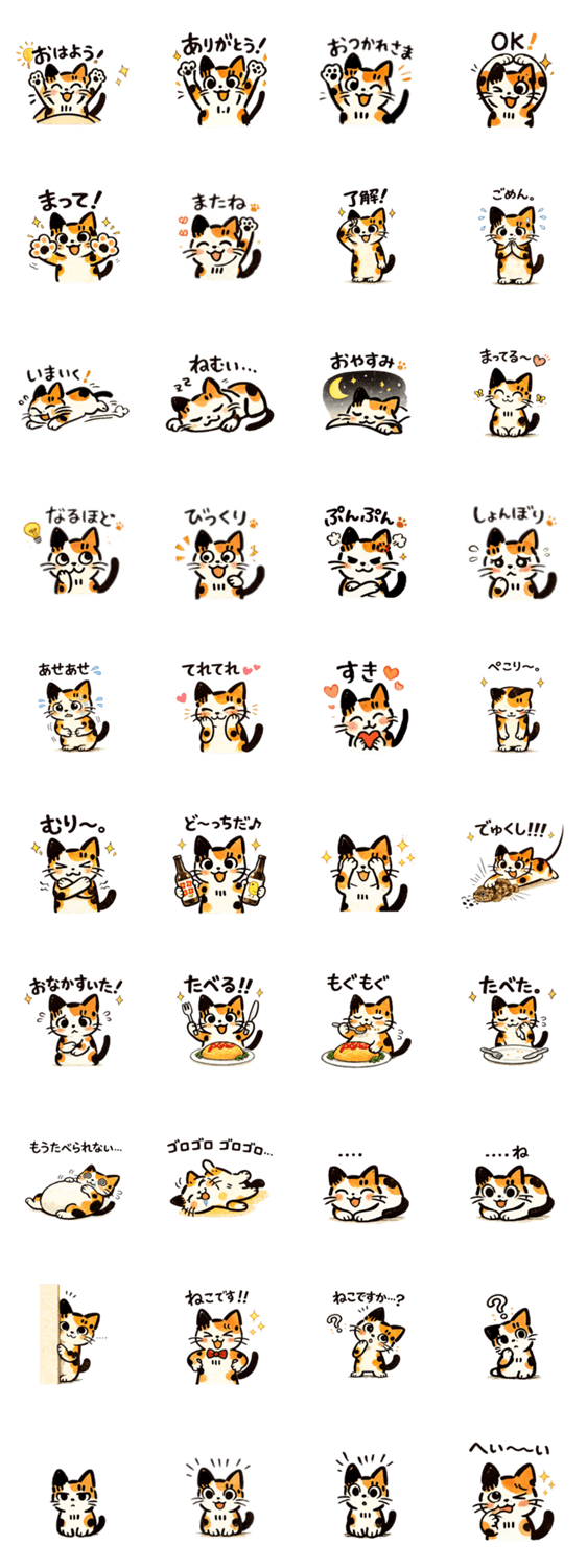 猫好きさん、三毛猫派さんのための、毎日使いやすいスタンプです。