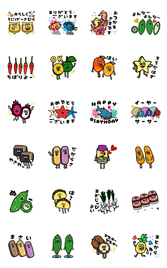 かわいくて使いやすい沖縄スタンプ動く♪2 おきなわ OKINAWA ゴーヤー ちんすこう パイナップル サーターアンダギー ドラゴンフルーツ シーサー 方言
