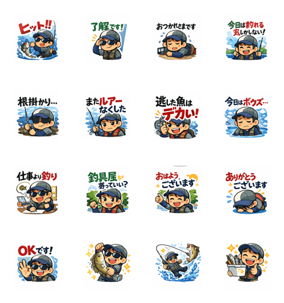 釣り好きのための楽しいLINEスタンプ 釣り仲間との会話や日常トークで使えるスタンプです。 ヒット!ボウズ…など釣り人あるある満載!