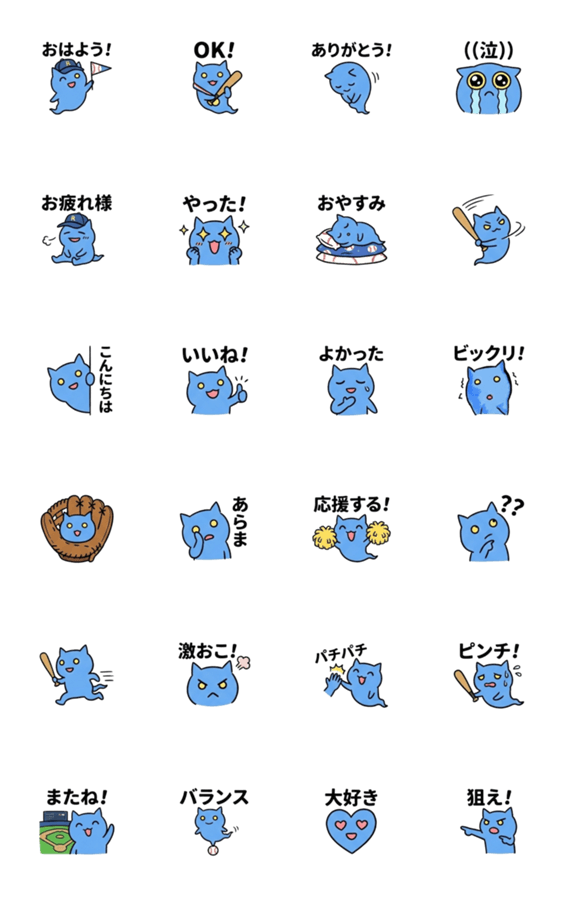 ゆるっと野球。おばけねこさんの日常挨拶 -LINEスタンプマニア
