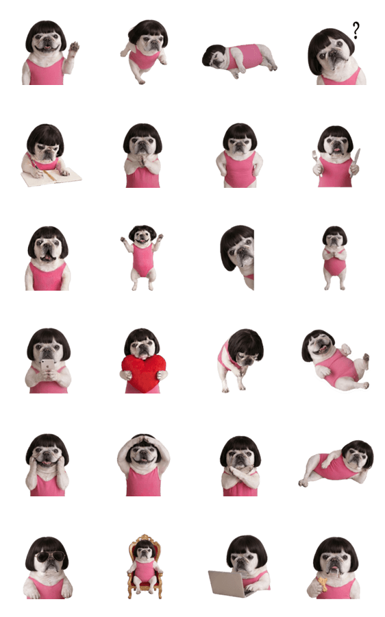 トレードマークのおかっぱとピンクのレオタードが放つ、シュールで独特なエネルギーをそのままお届けします。言葉がなくても感情が伝わる、使いやすさ満点のスタンプです。