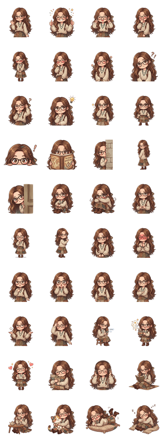 | スタンプ説明 | Mimi is a cute introverted girl with glasses who expresses every mood without words. Quiet, shy, and perfect for everyday reactions. |