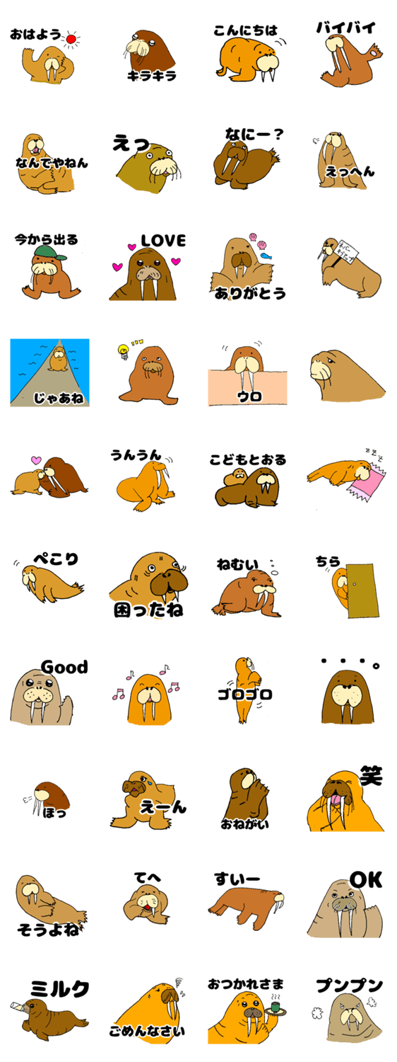 セイウチ大好きな人間が作ったスタンプです。がんばりやさんのセイウチがあなたの日常に寄り添ってくれます。友達やご家族などとのやりとりに使ってください。