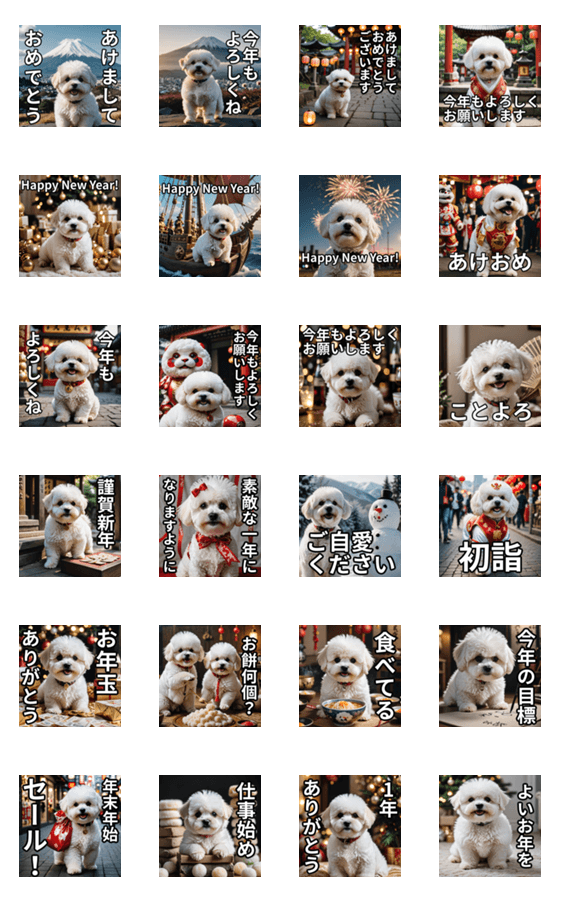 白いワンコだけ!あけおめスタンプ(再販) -LINEスタンプマニア
