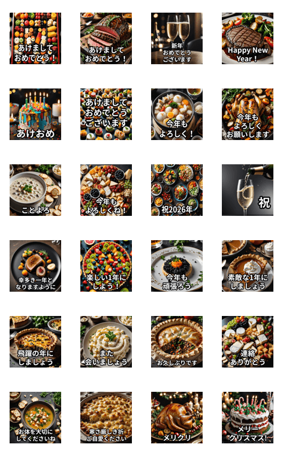 お正月に送れる食べ物スタンプ(再販) -LINEスタンプマニア