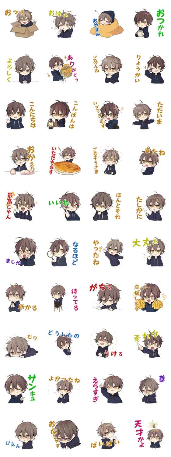 パーカーを着たちび男子のスタンプです。/挨拶/日常/毎日/使える/かわいい/シンプル/ゆるい/癒し/ほのぼの/推し/友達/家族/恋人/男子/学生/連絡/萌え