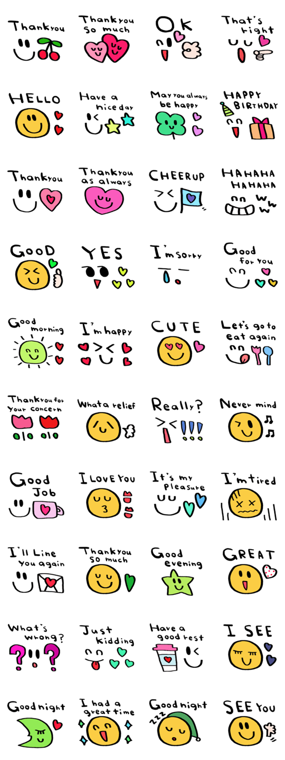 シンプルな日常会話スタンプです。お気遣いスタンプ 英語スタンプ