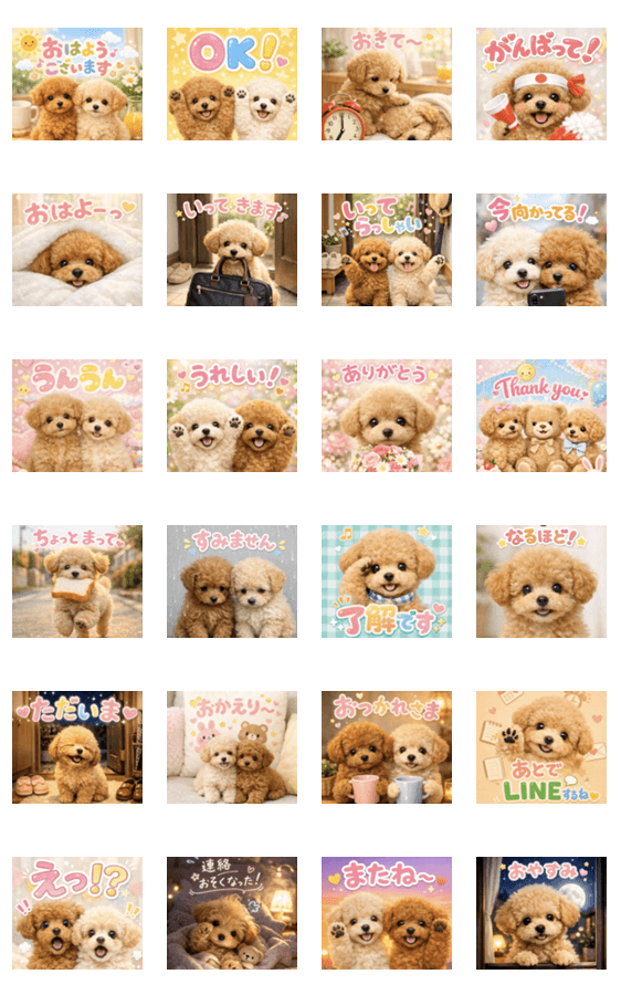 毎日使える♡基本の挨拶が揃ったトイプードルのポップアップスタンプです。