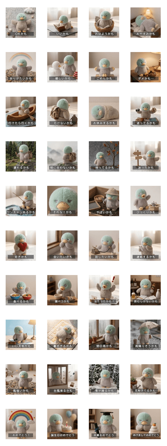 優柔不断なカモが、いろんな気持ちを字幕でゆる〜く伝えます。 ぬいぐるみ/日常/挨拶/曖昧/お祝い/天気/カップル/推し活/ぬい活/大人女子/かわいい/映画/動画