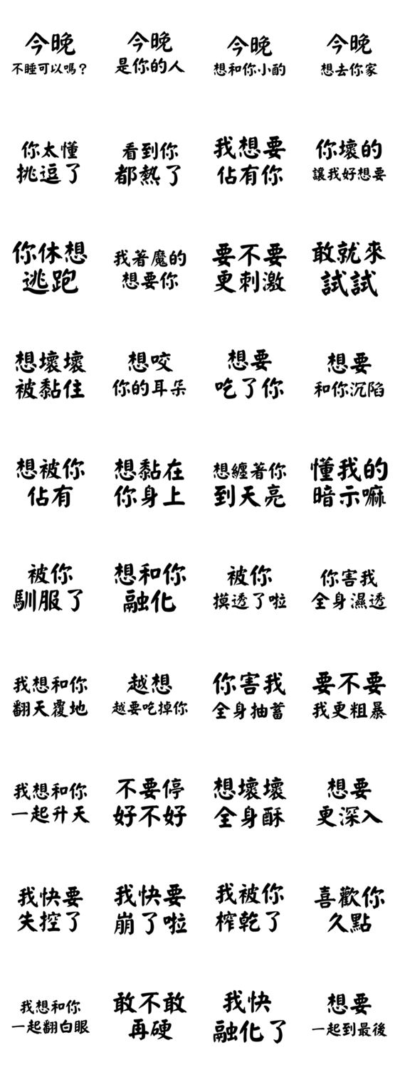 | スタンプ説明 | セクシーな駆け引き専用スタンプ。声よりも熱いメッセージを届けよう。 |