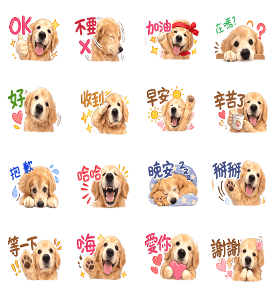Cute and playful stickers of Niu Niu, a lovely golden retriever. Perfect for everyday chats and expressing your feelings in a fun way.
