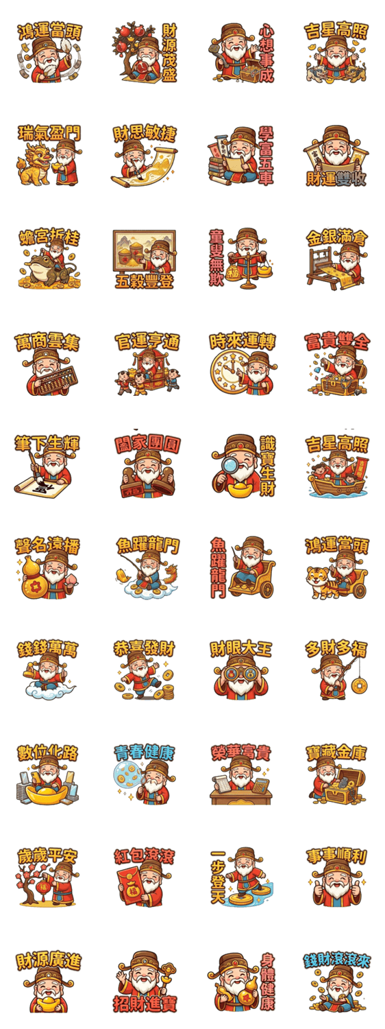 Bring luck and wealth to your chats with these cute Earth God stickers! Perfect for festive greetings and sharing good fortune with friends and family.