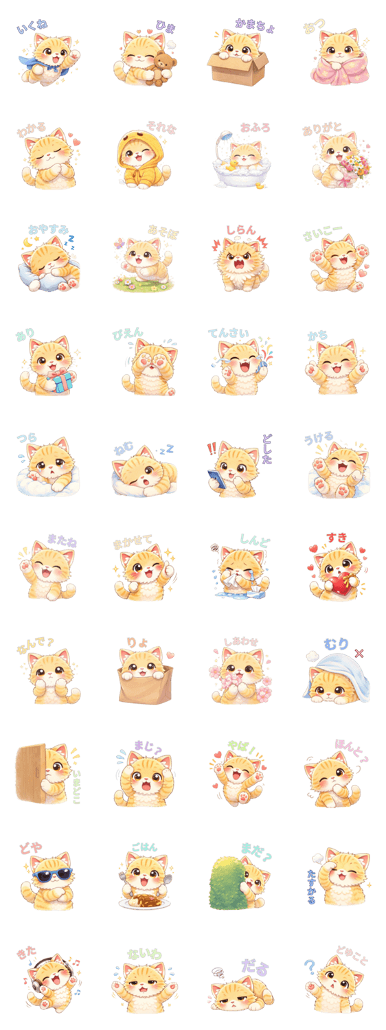 | スタンプ説明 | 毎日使えるゆるかわ猫スタンプ。友達トーク、返信、リアクション、あいさつにぴったり。かわいい・シンプル・日常会話・ゆるい・猫好き向けの使いやすいスタンプです。 |