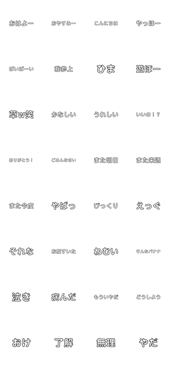 日常で使えるスタンプ。様々なあいさつなどのスタンプがあります。