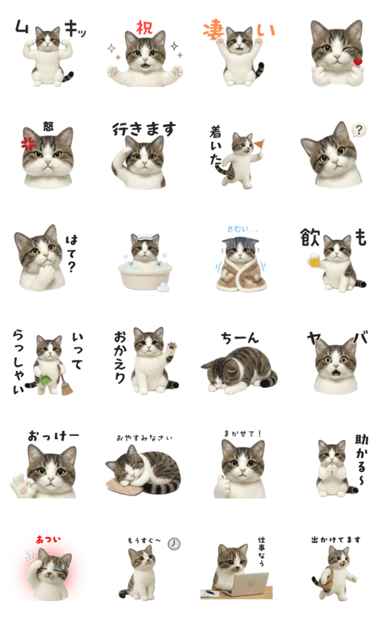 白ネコのあいうえお・・・ってるスタンプ