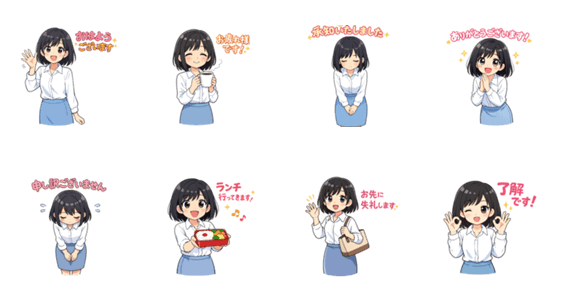OLさんのお仕事頑張ってる姿を描いたスタンプです。