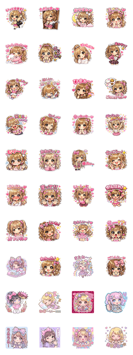 ピンク・ハート・リボンたっぷり♡ 平成ギャル風のデコかわいいスタンプで、かわいく気持ちを伝えよう!