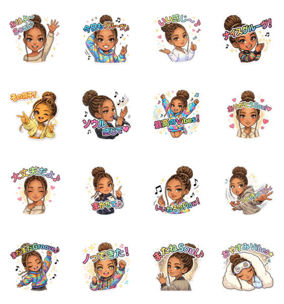 NIAのソウルフルなリアクションスタンプ。 日常トークや音楽好きの会話にぴったり!