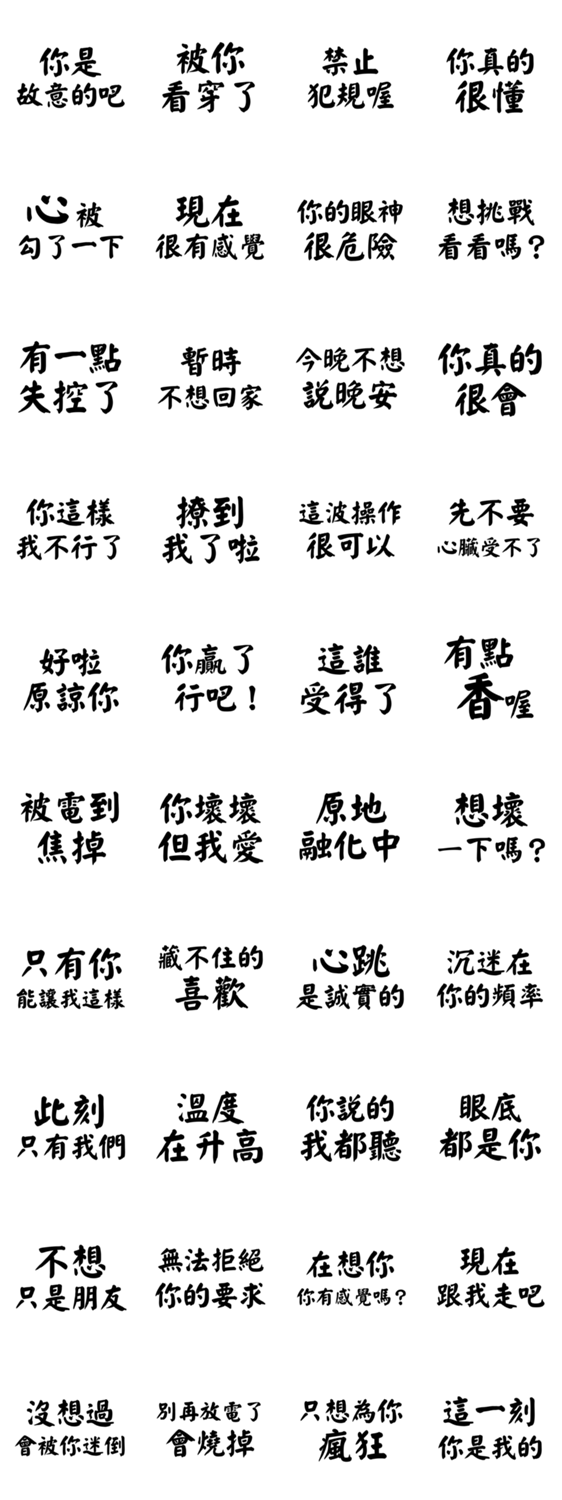 | スタンプ説明 | ユーモアとときめきを混ぜた会話術。二人の仲をぐっと熱くする、魅力的なフレーズ。 |