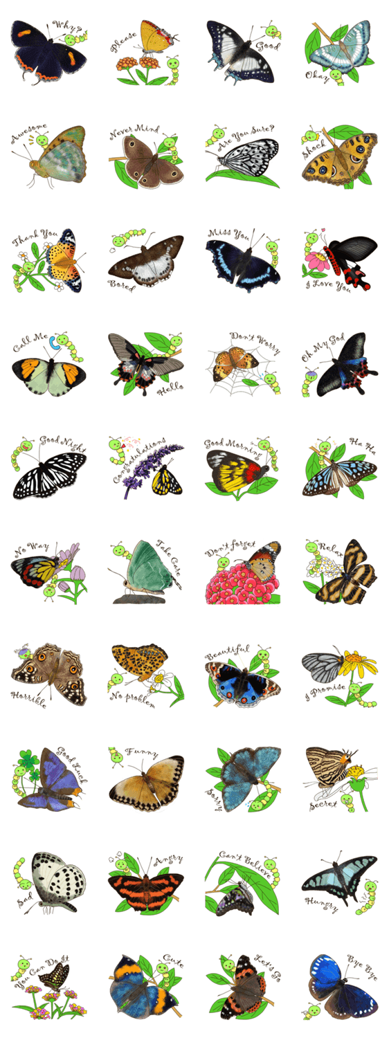 | スタンプ説明 | Taiwan used to have the name of "Butterfly Kingdom", in this small country there are more than 400 species of butterfly, hope you like them! |