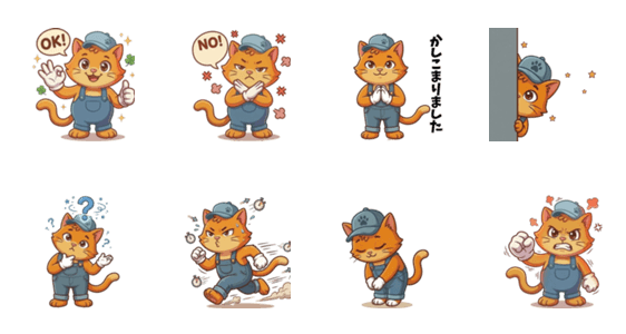 喜怒哀楽を全力で表現!オーバーオール・にゃんが、さらに使いやすく進化して登場!重宝するポーズを厳選。素直な猫の魅力をお楽しみください!