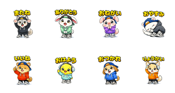| スタンプ説明 | A cute sticker set with eight adorable animals |