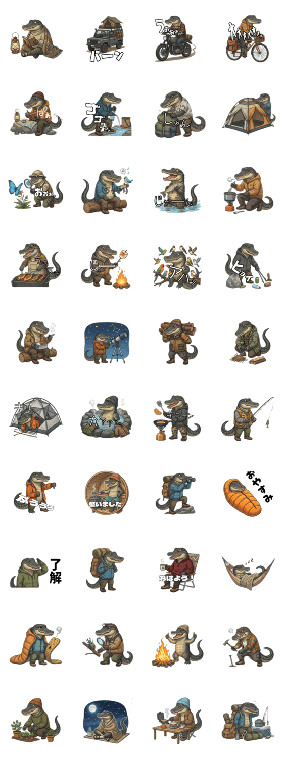 ワニのワニキャンのアウトドアキャンプスタンプです。LINEスタンプメーカーでつくったスタンプです。