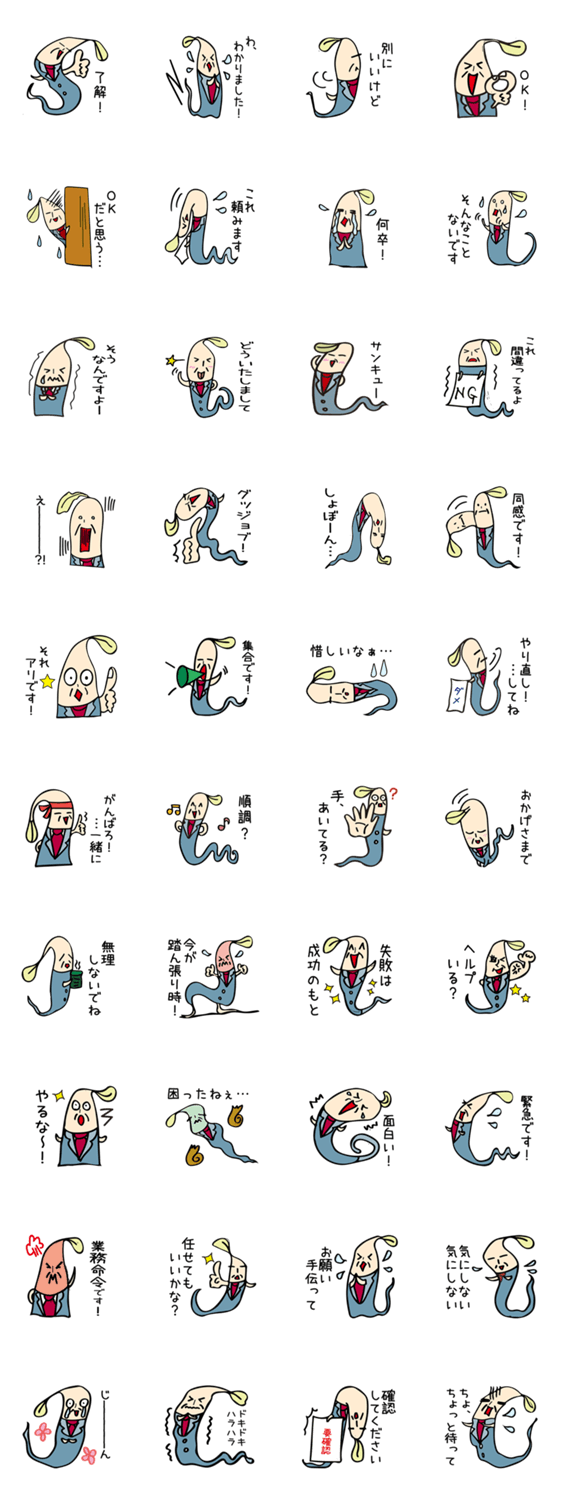 | スタンプ説明 | 上司から部下へ送るスタンプ『もやし部長』の第二弾です。実は頼み事が苦手な『もやし部長』。第二弾では部下からの投げかけに対し返答するスタンプを充実させました。 |