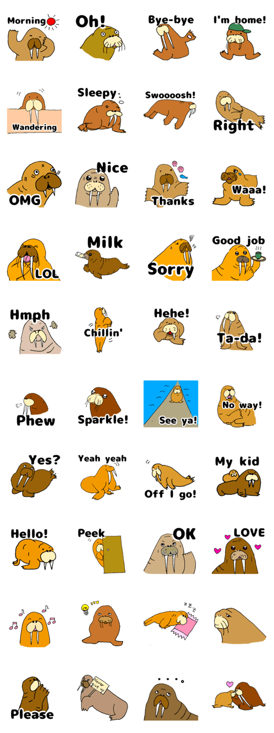 水族館で大人気な海獣セイウチの英語バージョンのスタンプです。しぶいセイウチスタンプをあなたの Lineに登場させちゃって下さい!