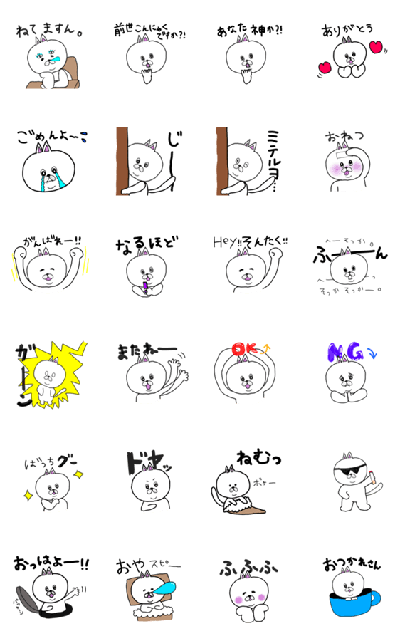 白ネコのあいうえお・・・ってるスタンプ