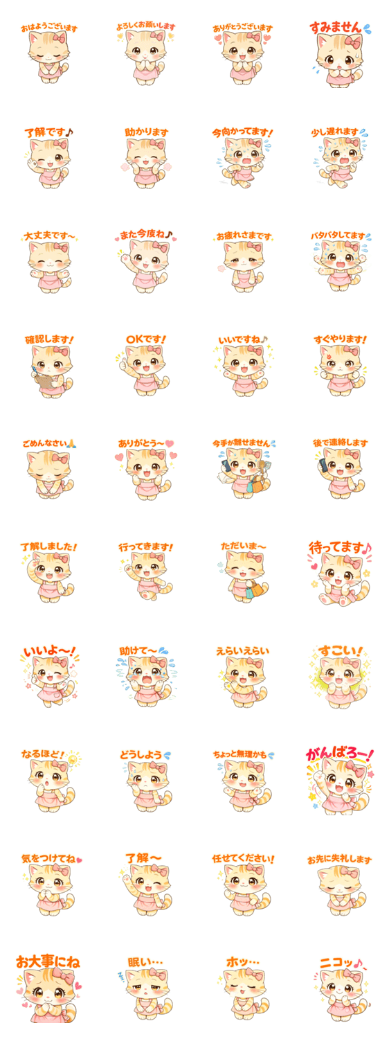 ママ友との連絡に便利な敬語スタンプ。送迎や学校連絡、日常会話に使いやすい優しい表情のかわいい猫スタンプです。