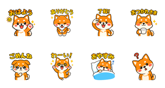 表情豊かな柴犬の、毎日使いやすいスタンプです。挨拶や感謝、リアクションなど、日常会話で役立つ8種類を揃えました。家族や友達とのトークを、可愛い柴犬が盛り上げます