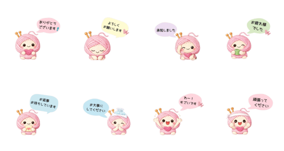 編み物教室ボンエプーのキャラクター、あみころちゃんのスタンプです。
