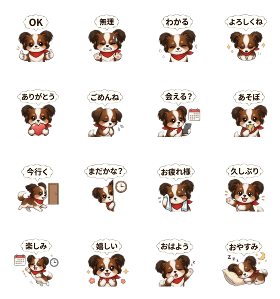 パピヨンの可愛い、ずっと使える日常スタンプです!