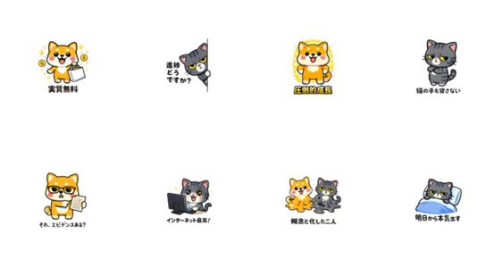 元気な柴犬とクールなトラ猫のコンビが!日常の挨拶から、シュールなネタ、ネットスラングまで網羅した、これさえあればトークに困らない最強のスタンプ集です。