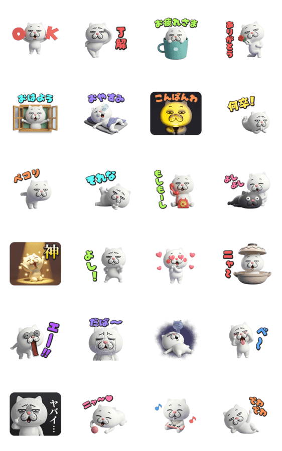白ネコのあいうえお・・・ってるスタンプ