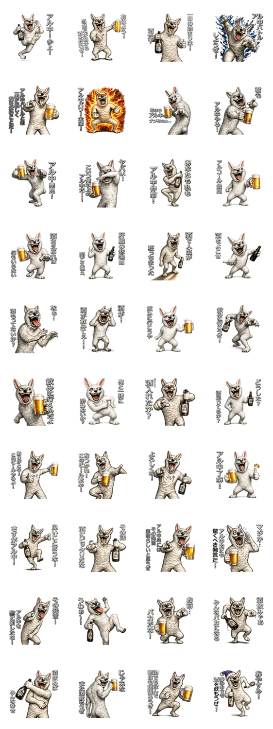 アル中のウサギのスタンプリアル版です。インパクト抜群。お酒好きの方やアルコール依存症の方などに。アル中の動物シリーズ。ビール飲み会新年会忘年会。※お酒は20歳から