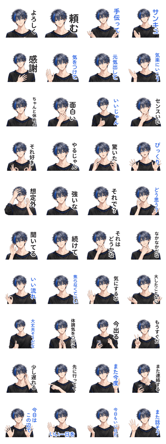 | スタンプ説明 | ちょっとクール。でもちゃんと優しい。 落ち着いた雰囲気の大人男子が、日常の会話をさりげなく彩ります。 |