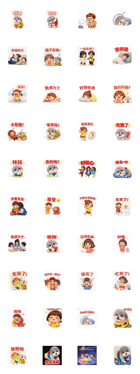 | スタンプ説明 | Cute kids and puppy daily chat stickers. |