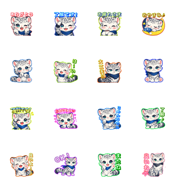 白ネコのあいうえお・・・ってるスタンプ