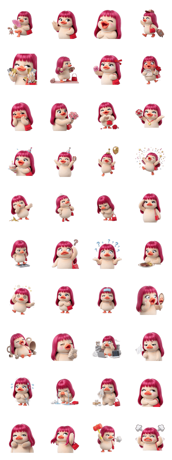 | スタンプ説明 | ピンクの長い髪のかわいいアヒル, 生意気な女の子, かわいい動物スタンプ |