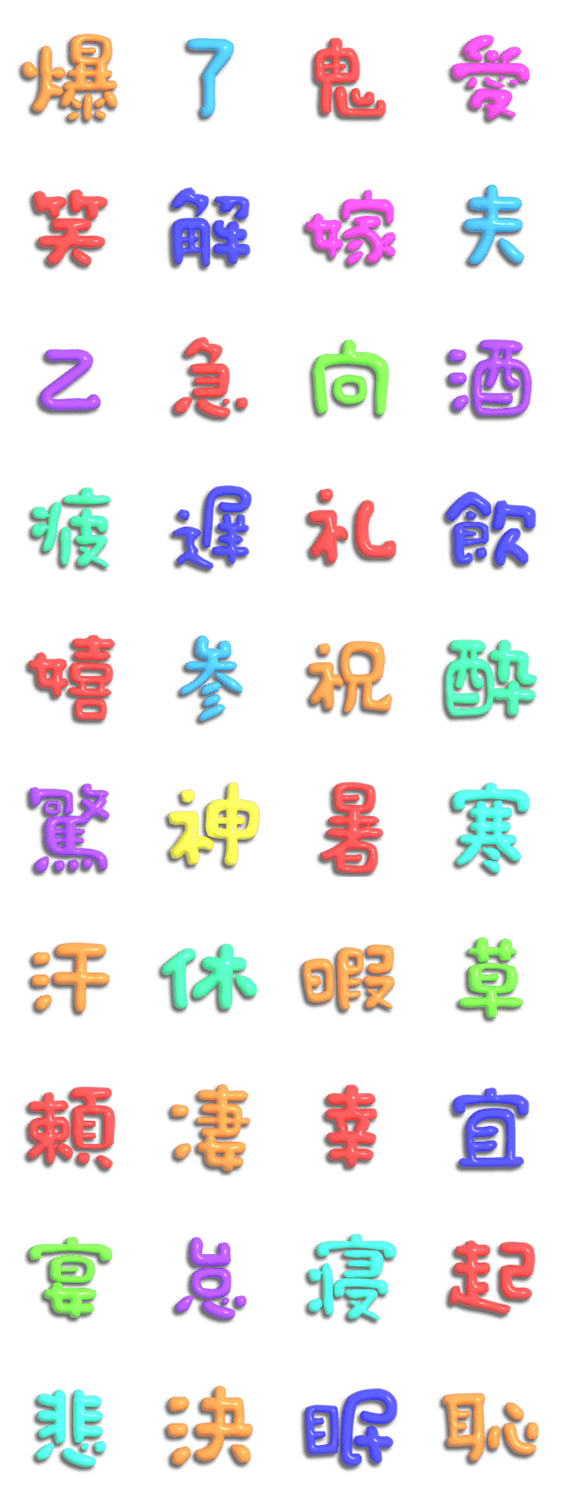 子供風のぷっくり文字で漢字一文字① -LINEスタンプマニア